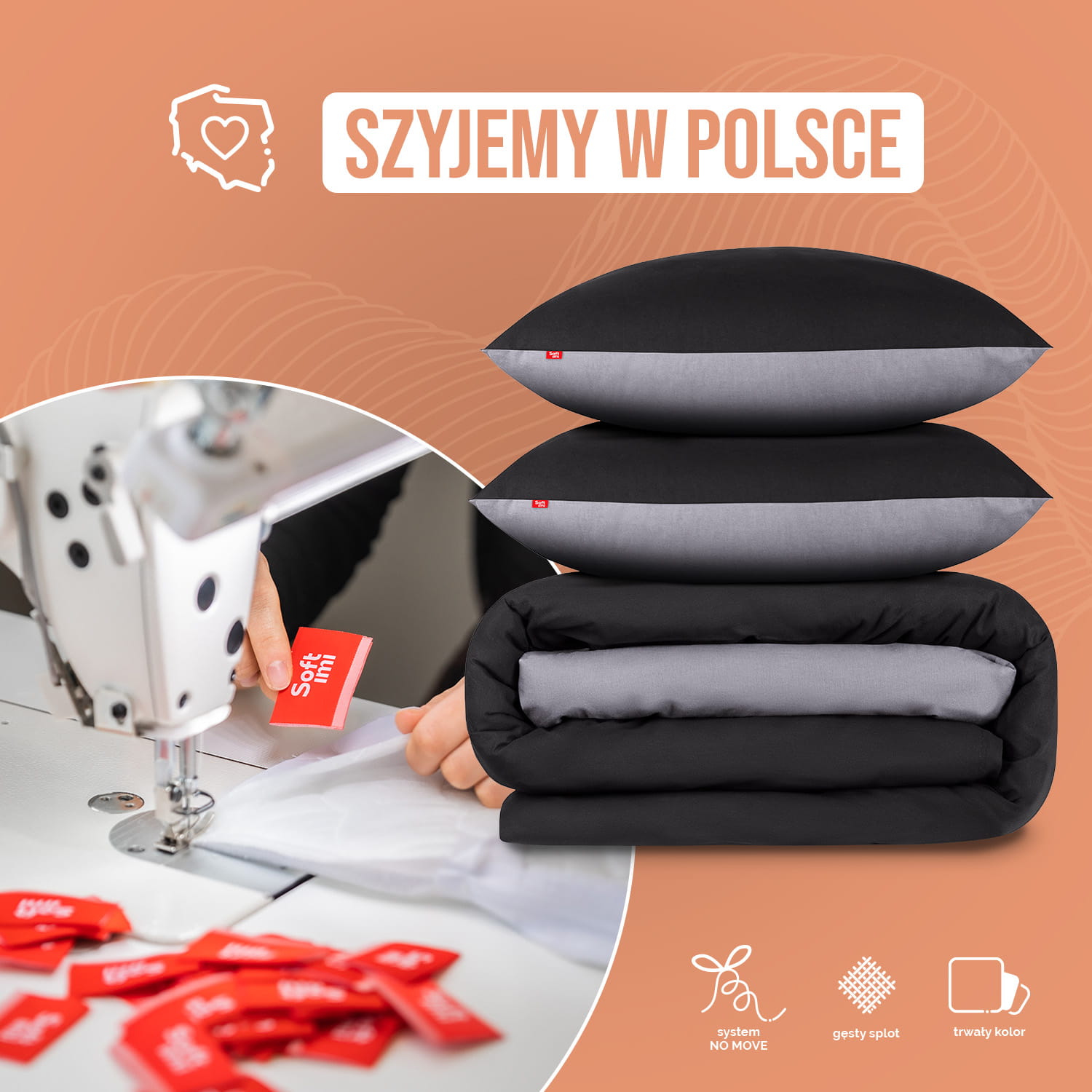 Zaprojektowana i uszyta w Polsce - Pościel SOFTIMI, to połączenie wyjątkowej jakości i tradycji rzemieślniczej, której źródło znajduje się w Polskiej szwalni. Nad produkcją każdego kompletu czuwają doświadczone Panie Krawcowe, sprawdzając nawet najmniejszy detal. Ich staranność i precyzja sprawiają, że każdy egzemplarz spełnia najwyższe standardy jakości.