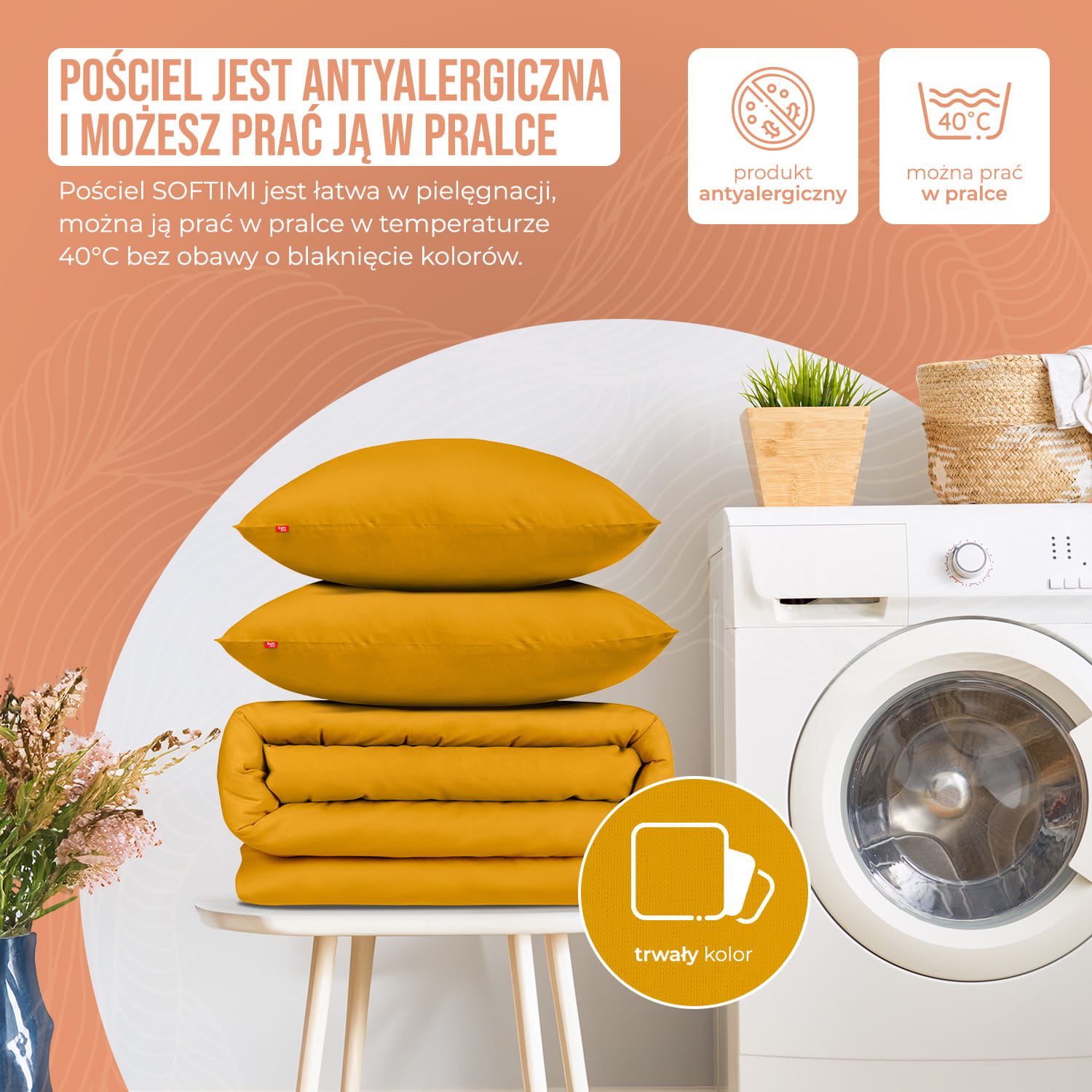Trwały kolor - Nasza pościel to inwestycja w jakość. Klienci, którzy wybierają pościele SOFTIMI, nie tylko doświadczają komfortu, ale także cieszą się z trwałych, pięknych kolorów, które niezmiennie towarzyszą im przez wiele lat.