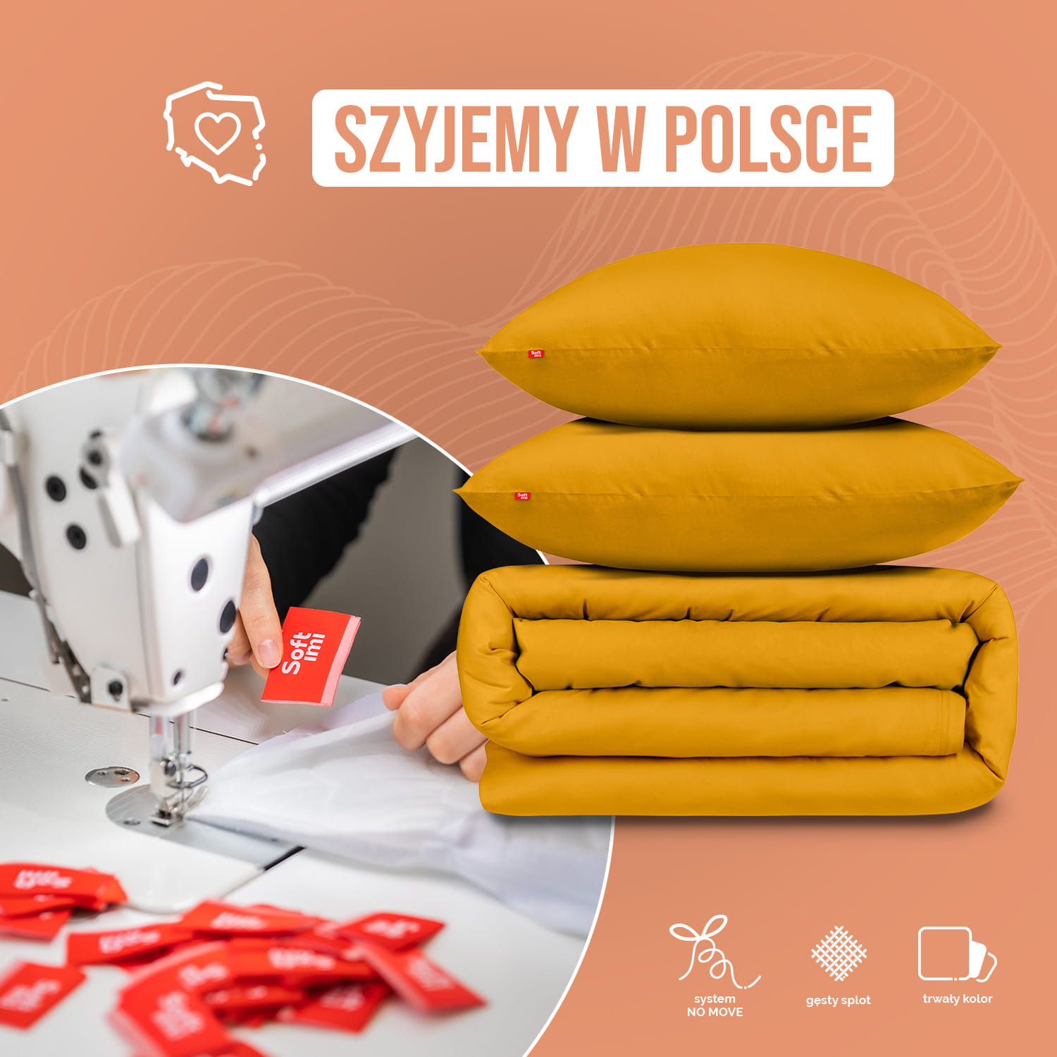 Zaprojektowana i uszyta w Polsce - Pościel SOFTIMI, to połączenie wyjątkowej jakości i tradycji rzemieślniczej, której źródło znajduje się w Polskiej szwalni. Nad produkcją każdego kompletu czuwają doświadczone Panie Krawcowe, sprawdzając nawet najmniejszy detal. Ich staranność i precyzja sprawiają, że każdy egzemplarz spełnia najwyższe standardy jakości.