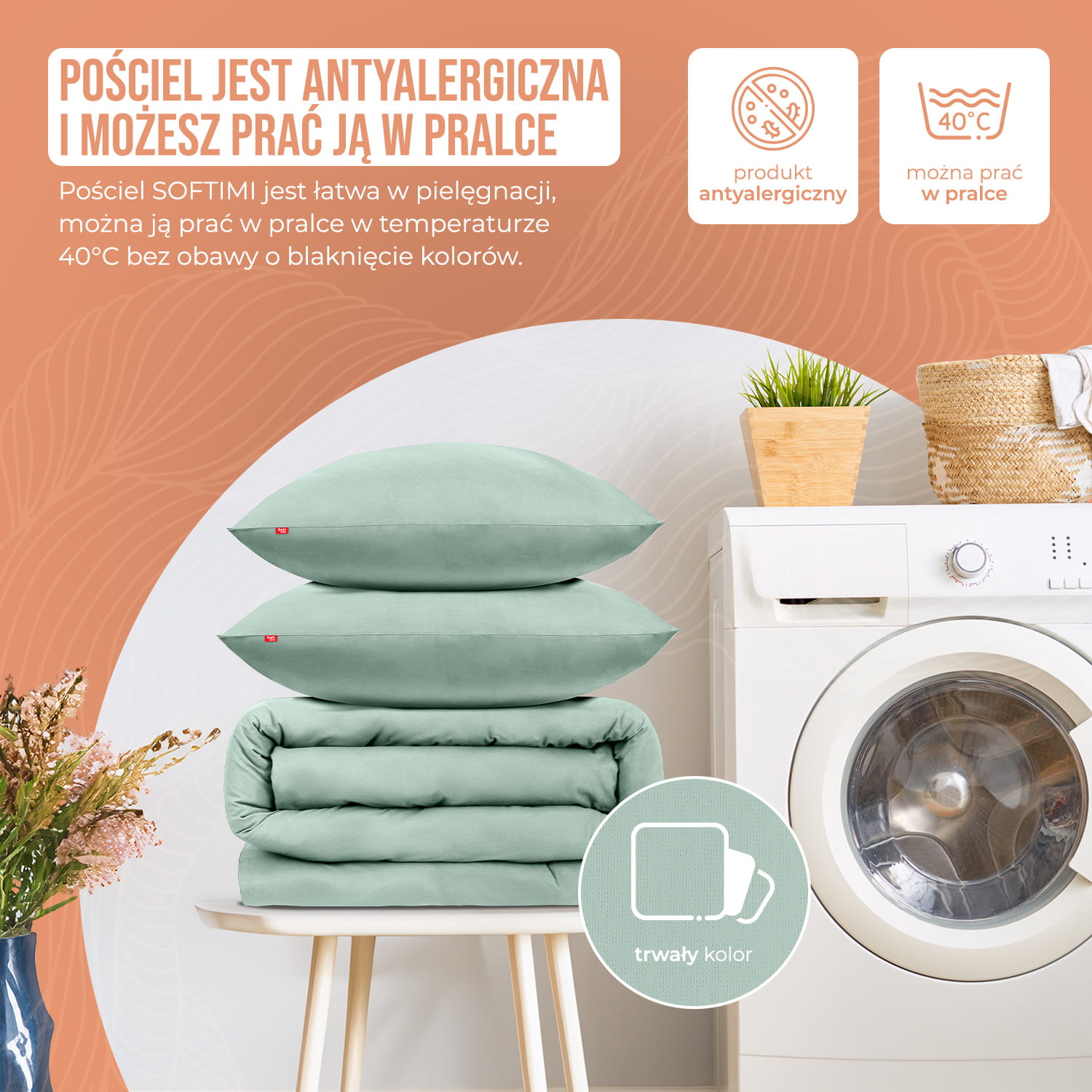 Trwały kolor - Nasza pościel to inwestycja w jakość. Klienci, którzy wybierają pościele SOFTIMI, nie tylko doświadczają komfortu, ale także cieszą się z trwałych, pięknych kolorów, które niezmiennie towarzyszą im przez wiele lat.