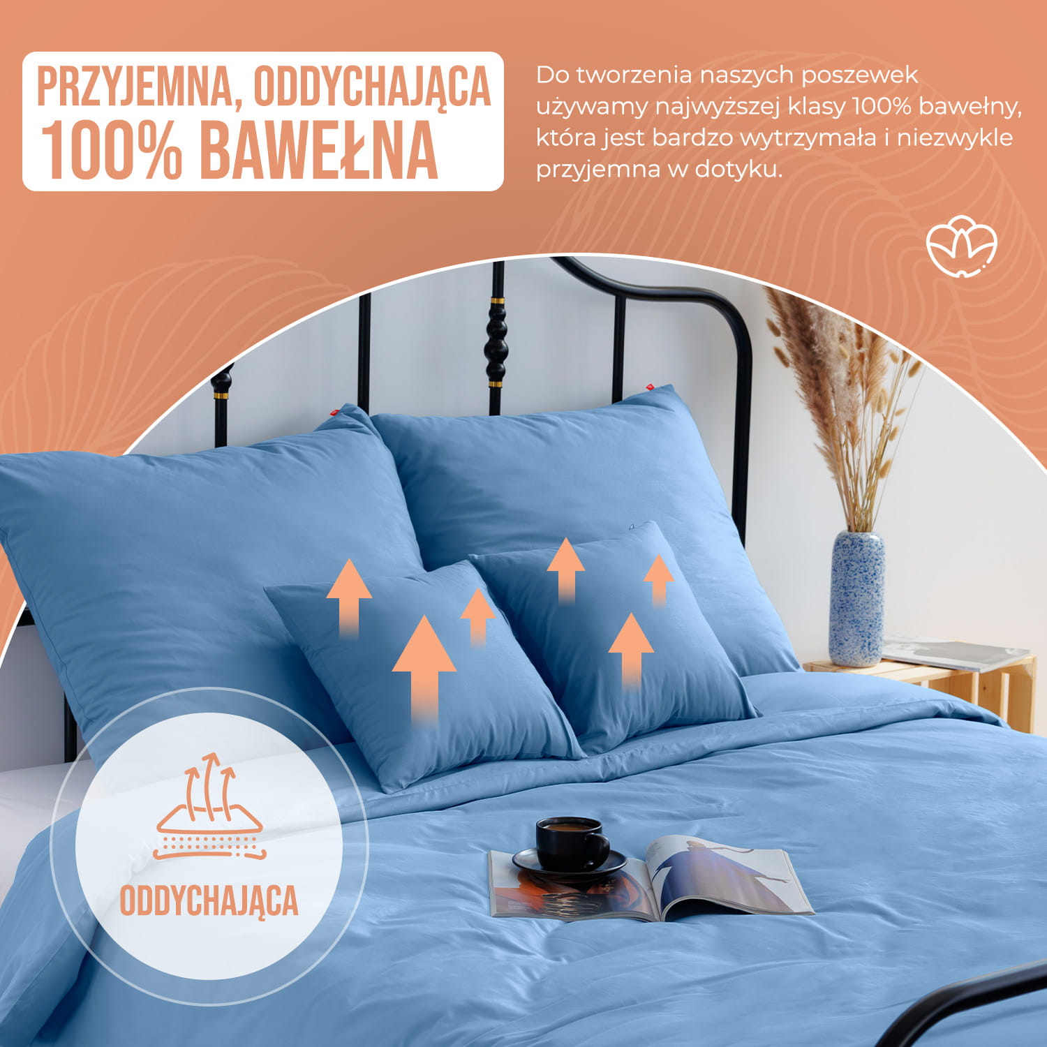 Jakość w każdym detalu - Jesteśmy przekonani, że jakość jest niezwykle ważna, dlatego poszewki zostały wykonane z 100% bawełny o gramaturze 140g/m2, zapewniającej maksymalną miękkość i komfort.