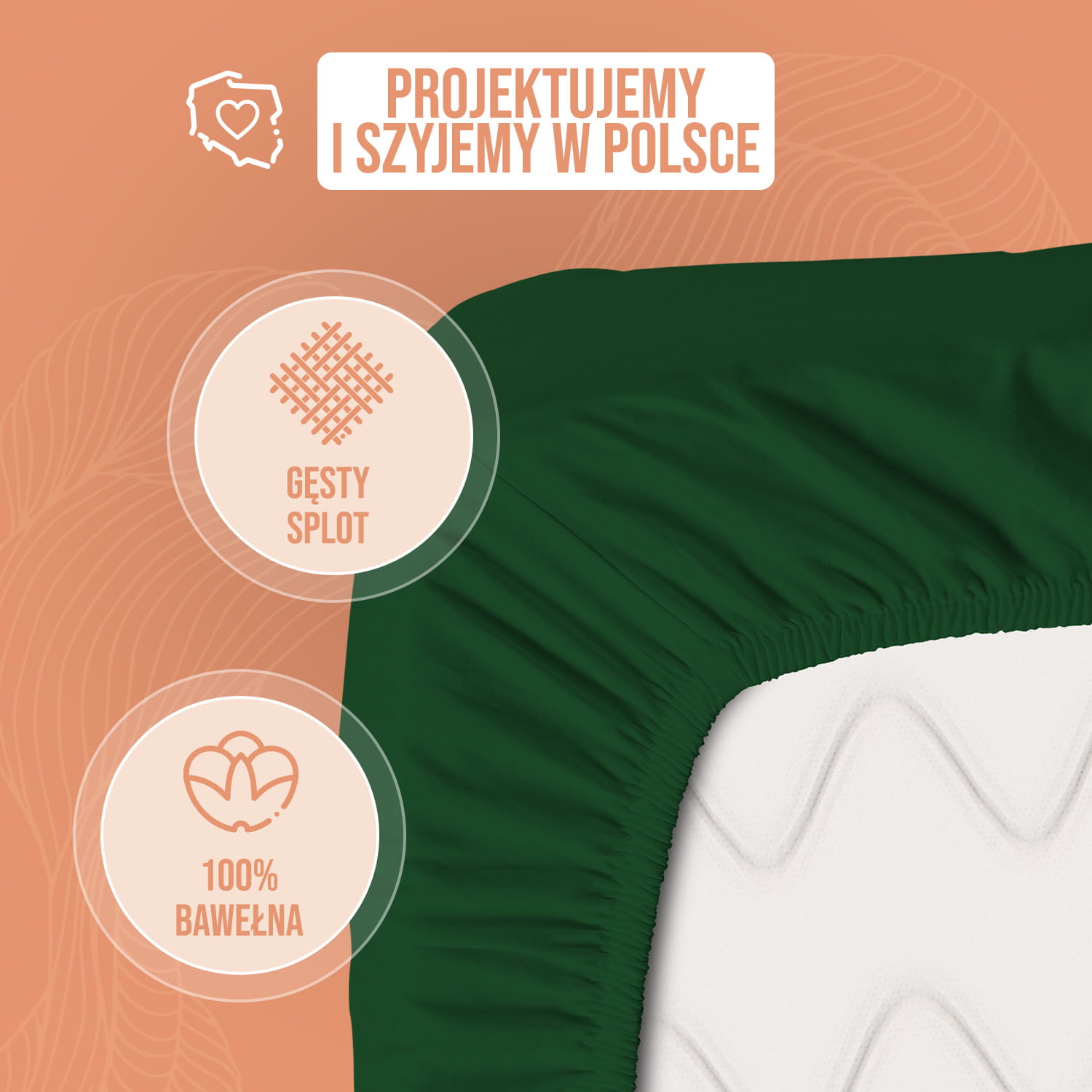 Prześcieradło z gumką na wysoki materac 160x200 cm grube 100% bawełna zielone