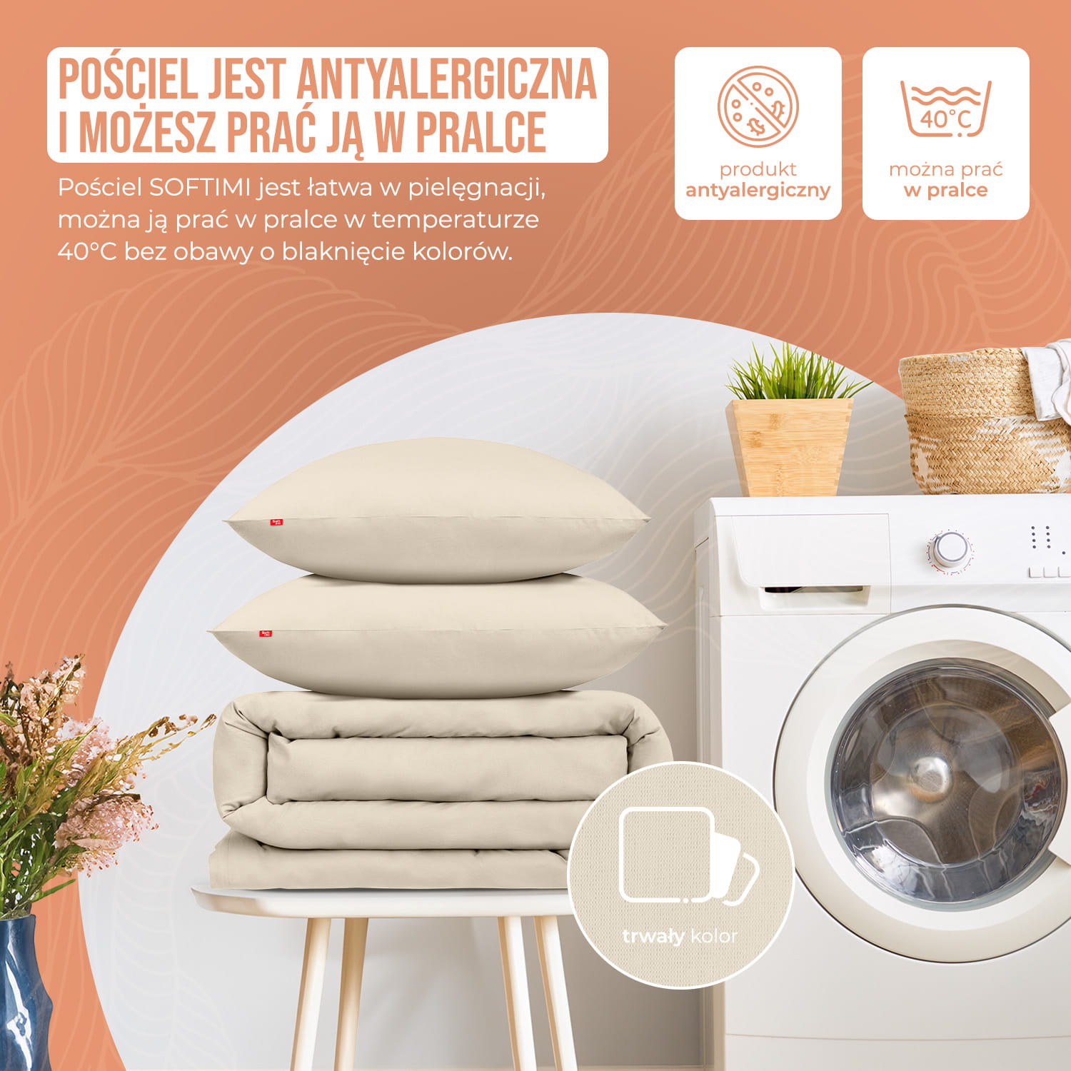 Trwały kolor - Nasza pościel to inwestycja w jakość. Klienci, którzy wybierają pościele SOFTIMI, nie tylko doświadczają komfortu, ale także cieszą się z trwałych, pięknych kolorów, które niezmiennie towarzyszą im przez wiele lat.