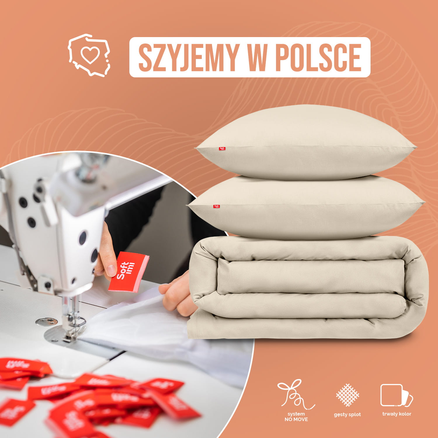 Zaprojektowana i uszyta w Polsce - Pościel SOFTIMI, to połączenie wyjątkowej jakości i tradycji rzemieślniczej, której źródło znajduje się w Polskiej szwalni. Nad produkcją każdego kompletu czuwają doświadczone Panie Krawcowe, sprawdzając nawet najmniejszy detal. Ich staranność i precyzja sprawiają, że każdy egzemplarz spełnia najwyższe standardy jakości.