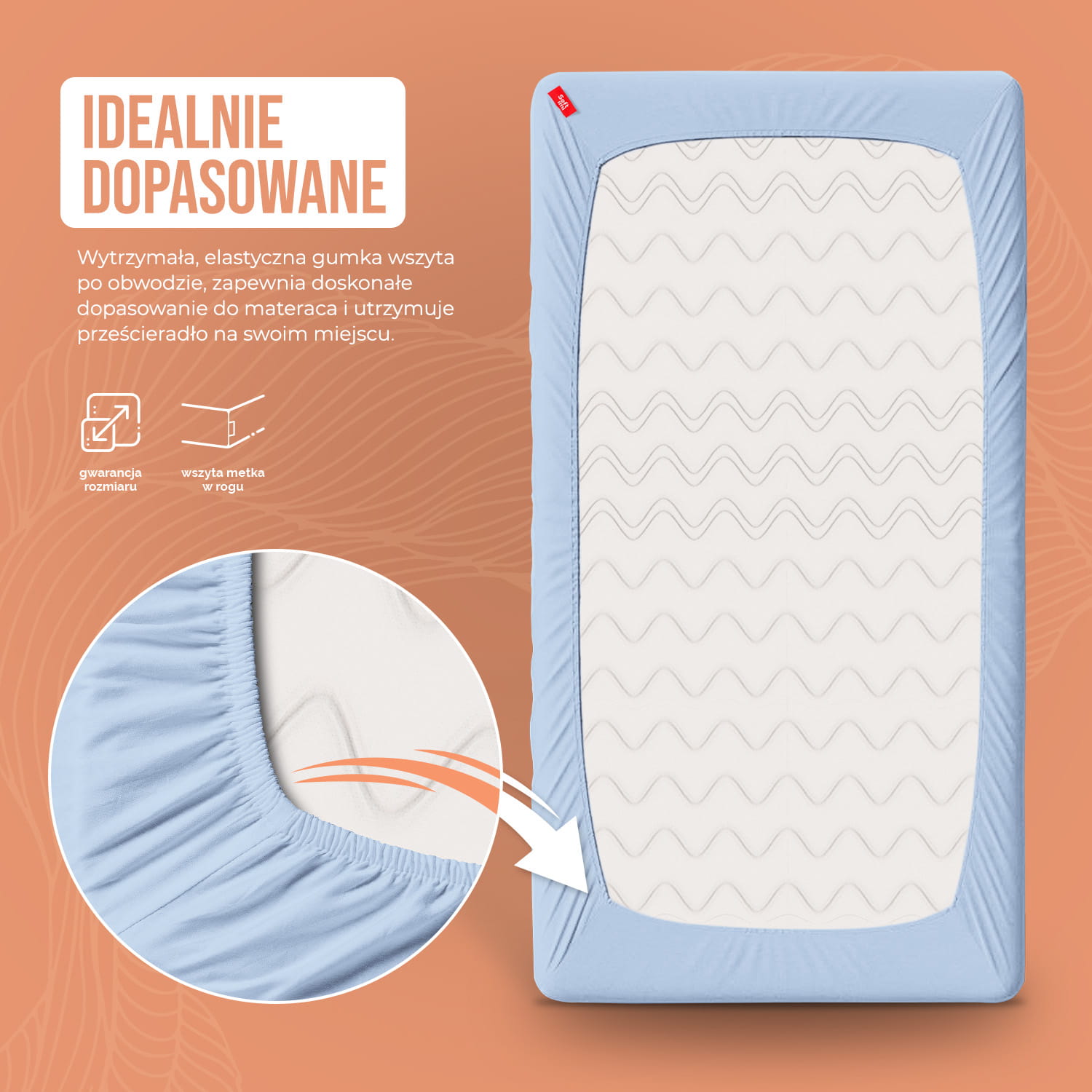 Gwarancja rozmiaru - Każdy nasz produkt posiada dokładnie taki wymiar, jaki jest podawany w ofercie, dzięki czemu będzie pasować na odpowiedni rozmiar materaca. Wystarczy, że wybierzesz prześcieradło odpowiadające wielkości Twojego materaca.