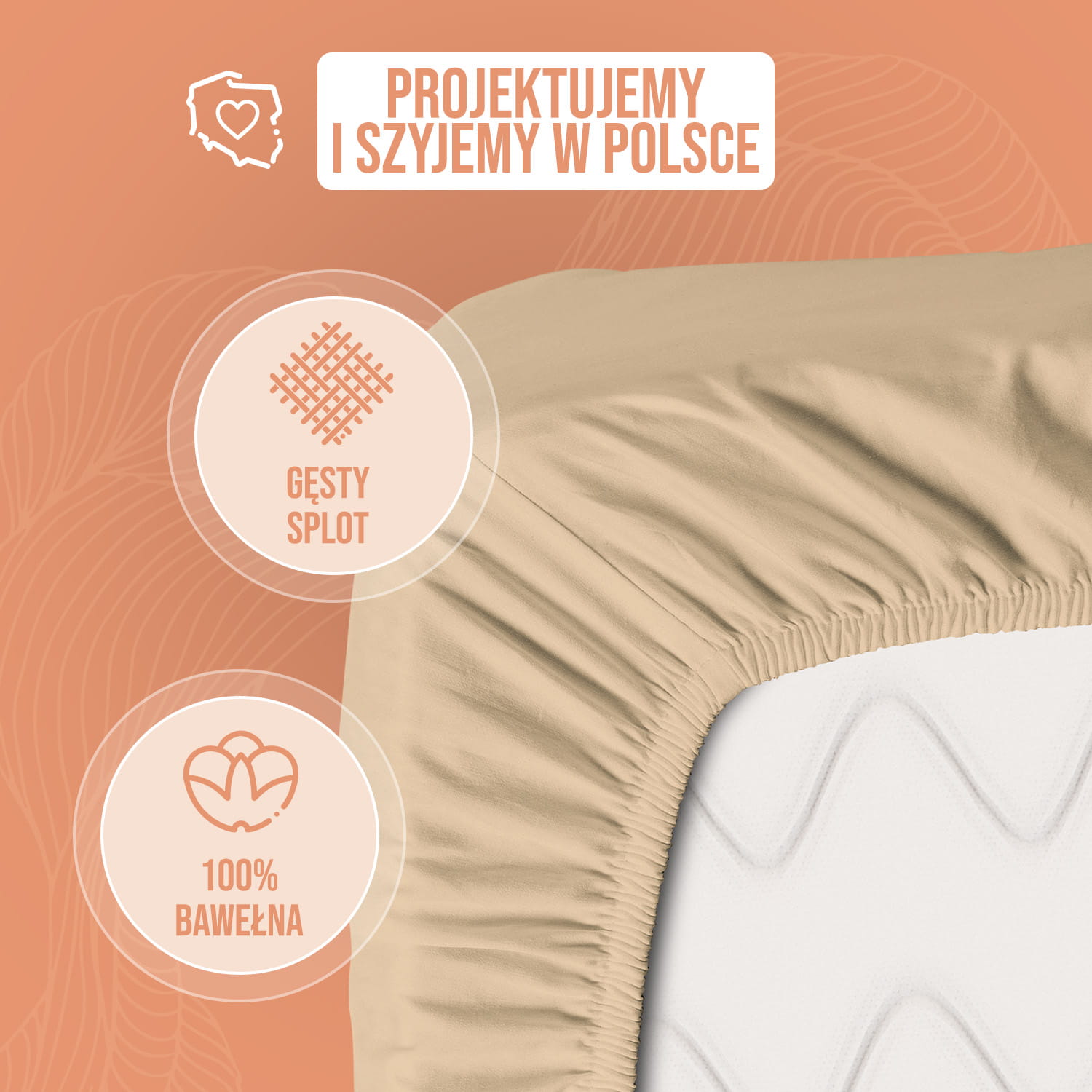 Prześcieradło z gumką na wysoki materac 160x200 cm grube 100% bawełna cappuccino