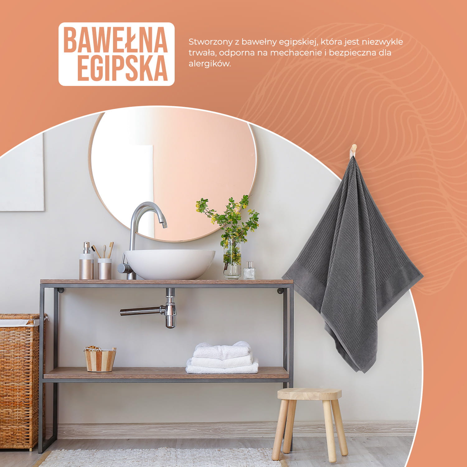 Doskonała chłonność - Nasz ręcznik uszyty jest z najwyższej jakości bawełny egipskiej o gęstym splocie i wysokiej gramaturze. Dzięki temu doskonale chłonie wodę, zapewniając szybkie wysuszenie Twojej skóry po kąpieli nie pozostawiając wilgotnej warstwy.