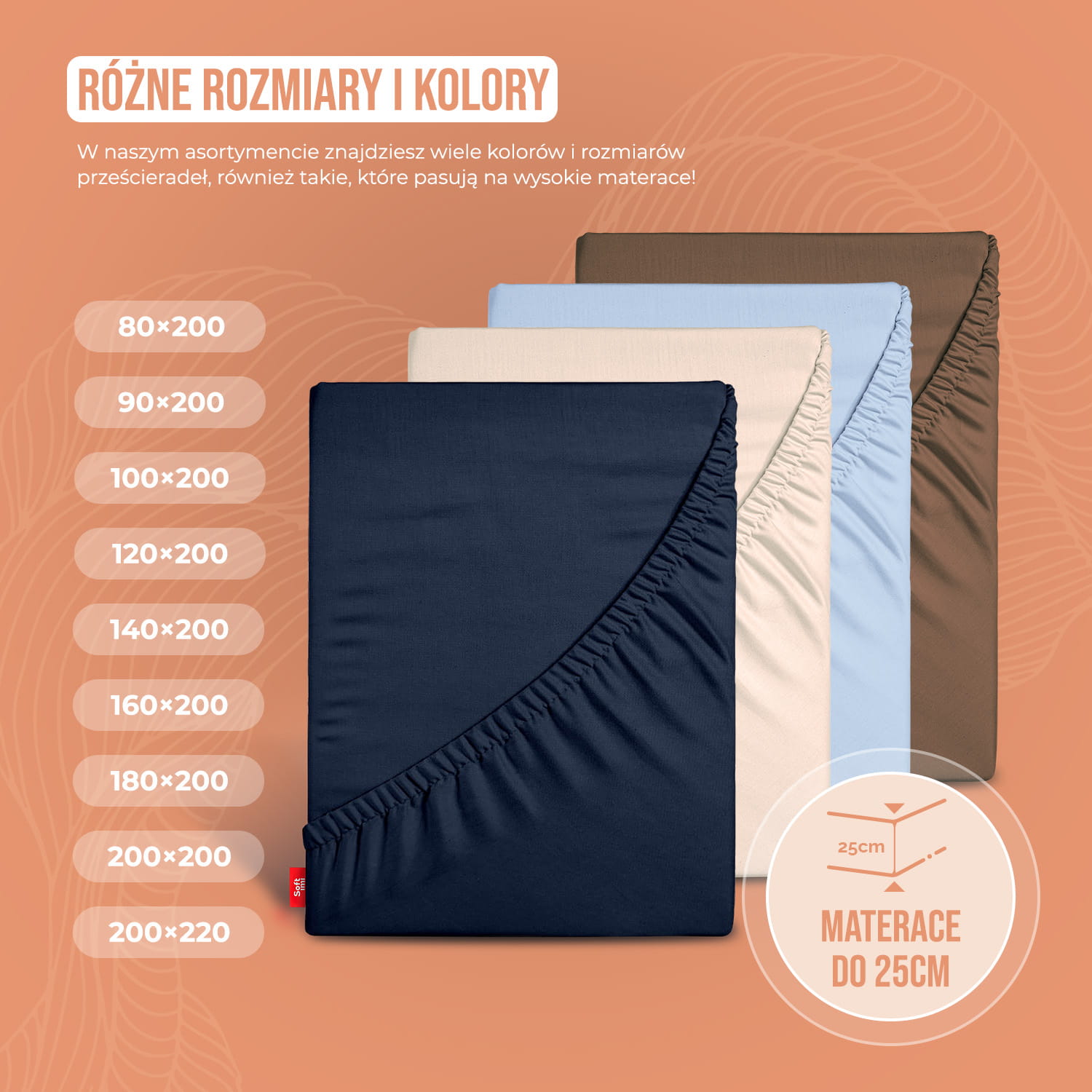 Gwarancja rozmiaru - Każdy nasz produkt posiada dokładnie taki wymiar, jaki jest podawany w ofercie, dzięki czemu będzie pasować na odpowiedni rozmiar materaca. Wystarczy, że wybierzesz prześcieradło odpowiadające wielkości Twojego materaca.